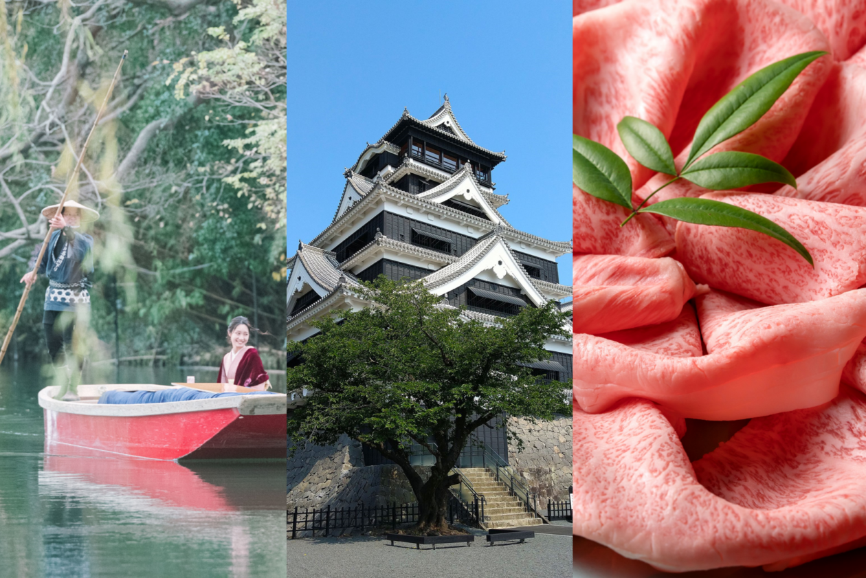 來到熊本,當然要把在地美食一起收進行程裡。午餐可以先從湯頭濃厚、蒜香存在感十足的「熊本拉麵」下手;想吃得更有地方感,也很推薦試試「生馬肉」的清甜口感,或是選擇油脂細緻、肉味濃郁的「赤牛丼」。吃飽喝足,再出發跑下午行程。
